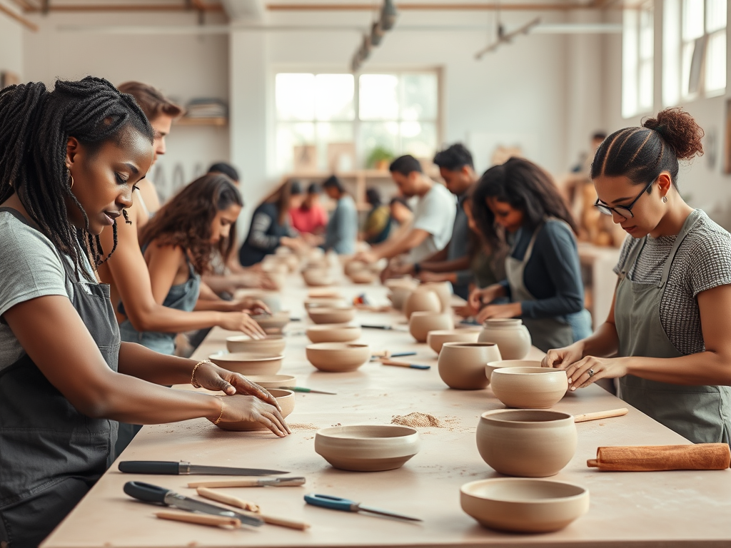 Organizzazione di corsi artistici di pittura e disegno, workshop di ceramica e installazioni multimaetriche